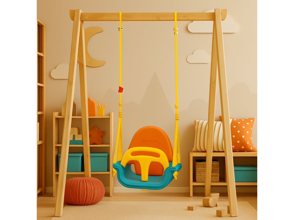 Barevná houpačka je moderní plastová houpačka vhodná pro děti až do 30 Kg. Díky unikátnímu řešení se mohou houpat malé děti. Houpačka má bezpečnostní oporu zad a také ochranný rám před dítětem. Zádová opěrka má 2 pozice pro co nejbezpečnější posez dítěte. Dětem přizpůsobíte houpačku tak, že snížíte lana. Větší děti se mohou houpat jen na sedáku s opěradlem nebo bez opěradla. Délka houpačky je nastavitelná. Sedátko je dostatečně široké pro bezpečné usazení dítěte.