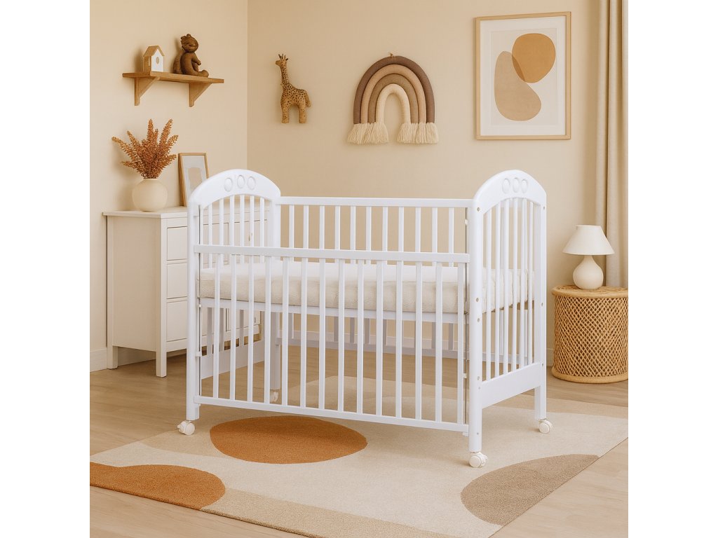 Baby cot - Scarlett ATLANTA (beech), retractable sides - white - 120 x 60 cm