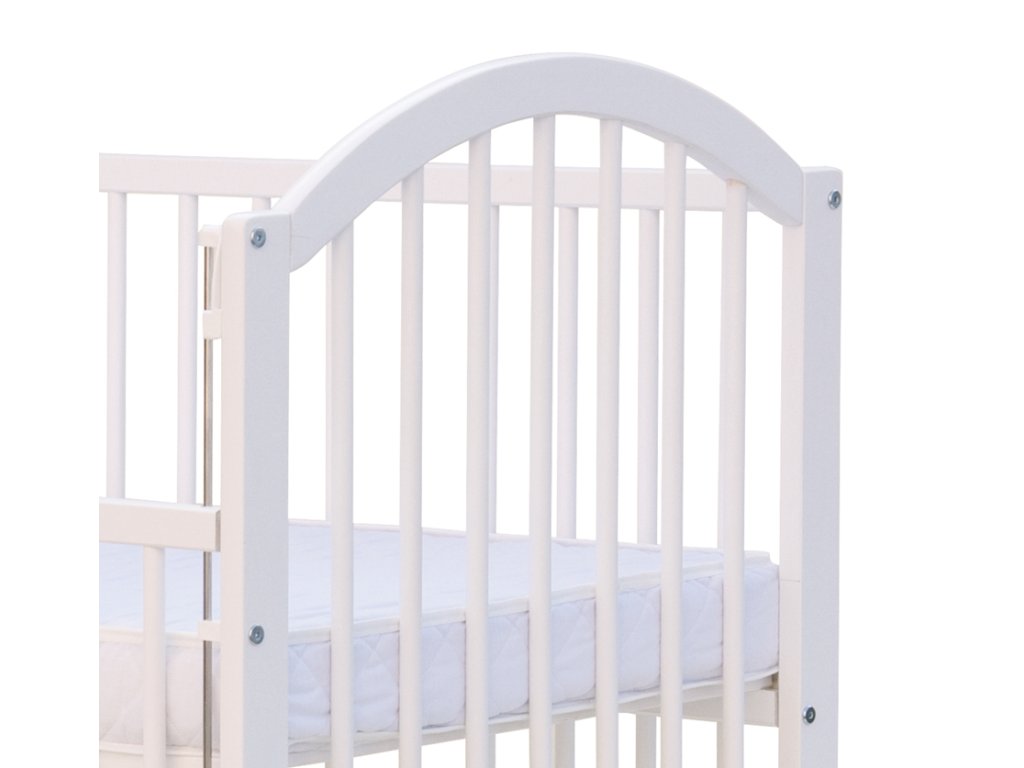 Baby crib Alice - white is made of quality beech wood with a quality finish. The cot is manufactured according to the valid standards ČSN EN 716-1+AC (910606) for products for children up to 3 years of age. The surface treatment with colourless and coloured varnish complies with the Decree of the Ministry of Health of the Czech Republic No. 84/2001 Coll., imposed on products with varnished finish for children up to 3 years of age.