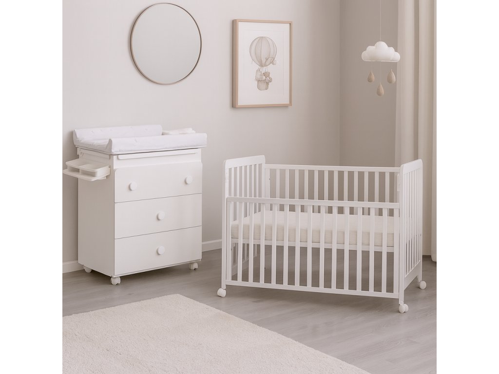 The Scarlett Vista cot is made of quality beech wood in the highest possible quality of finish (sanding and varnishing). The cot is manufactured according to the valid standards ofČSN EN 716-1+AC (910606) for products for children up to 3 years of age. The surface finish with colourless and coloured varnish complies with the Decree of the Ministry of Health of the Czech Republic No. 84/2001 Coll., imposed on products with varnished finish for children up to 3 years of age.