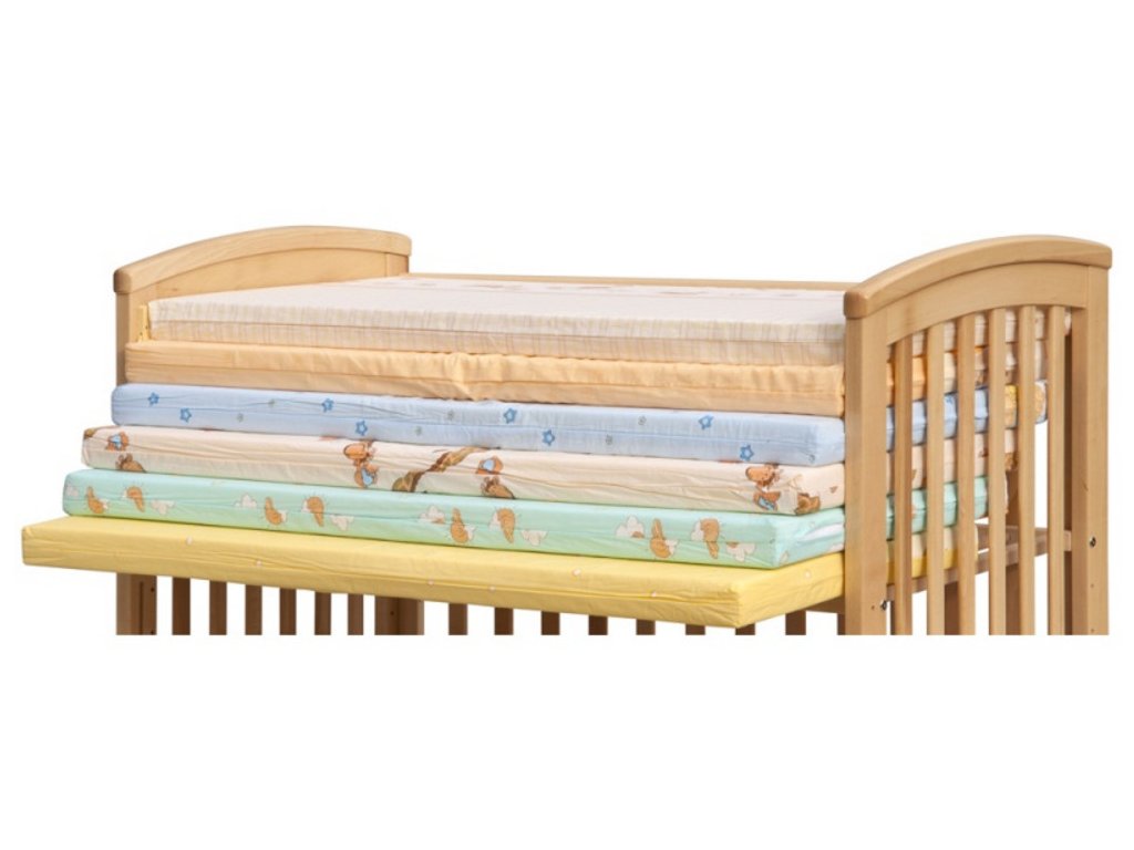 When choosing a mattress, it is important to choose a sufficiently firm and elastic mattress. The child not only lies on the mattress, but also spends a significant part of the time in the cot, sitting or standing. A mattress that is not very firm and resilient can cause the baby to crawl up into the crib frame and deform the legs.