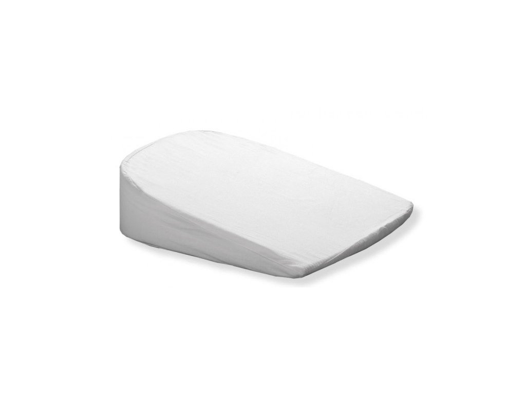 The wedge can be used under or over the mattress. It is made of polyurethane. The removable cover is made of 100% cotton and is machine washable.