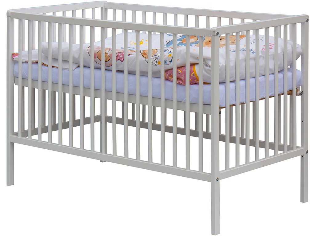 1. Dětská dřevěná postýlka 120x60 cm - bílá, masiv buk, 3 vyndavací příčky, 3 polohy roštu