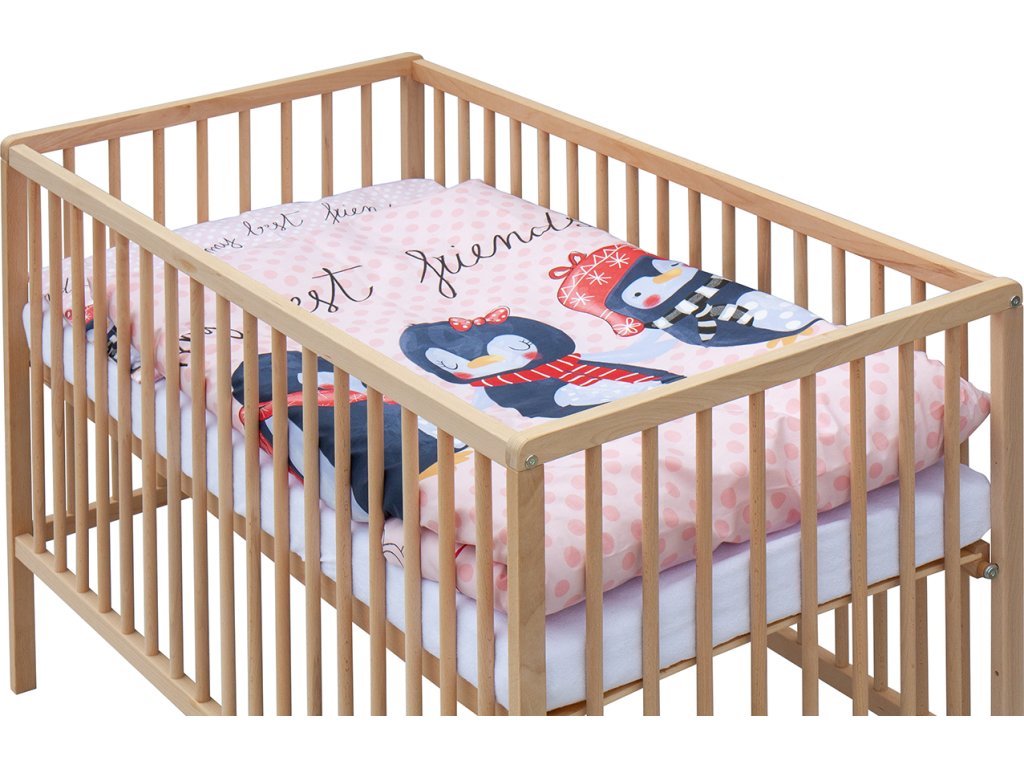 1. Dětská dřevěná postýlka 120 x 60 cm - přírodní, masiv borovice, 3 vyndavací příčky, 3 polohy roštu,