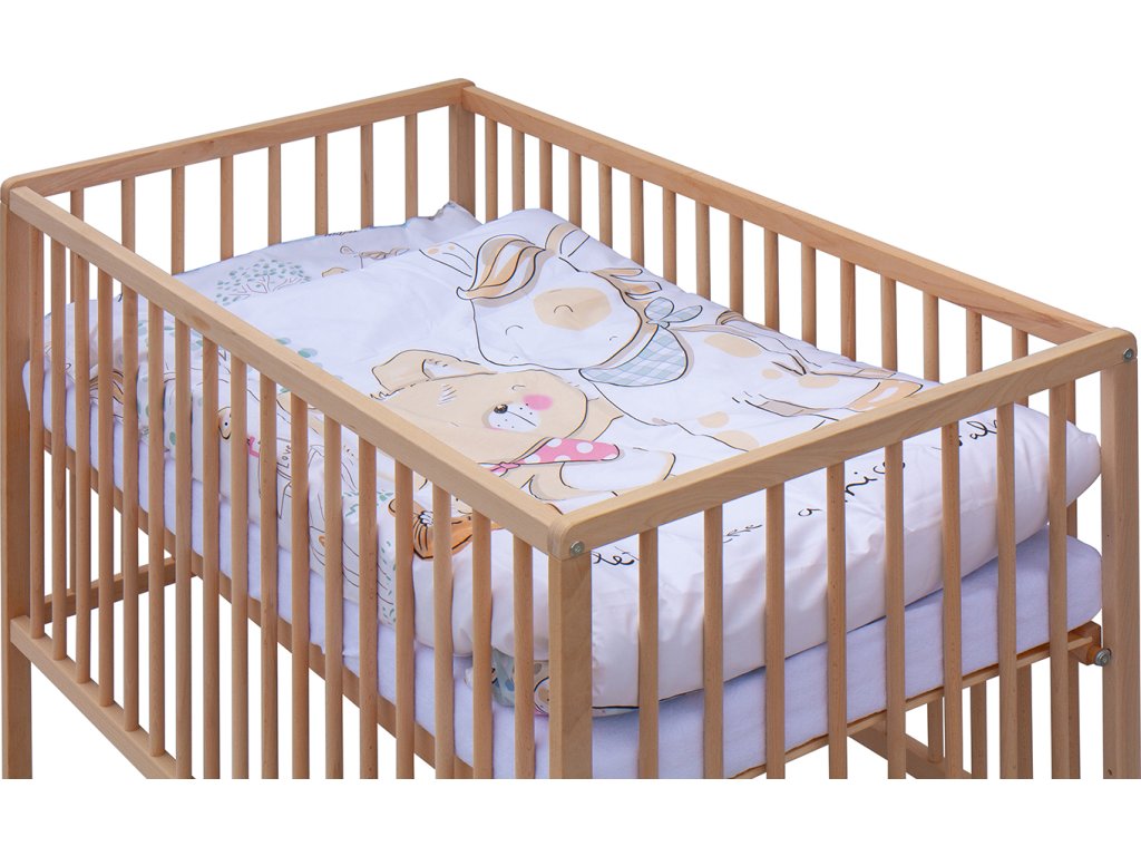 1. Dětská dřevěná postýlka 120 x 60 cm - přírodní, masiv borovice, 3 vyndavací příčky, 3 polohy roštu,