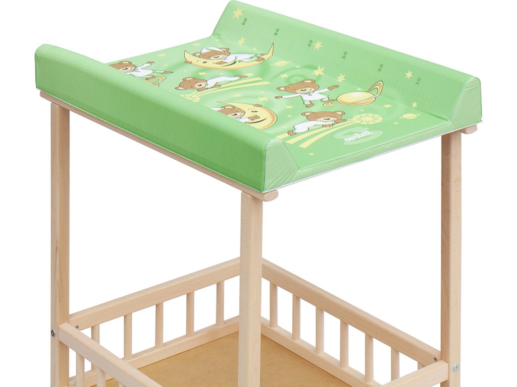 Praktický přebalovací pult se dvěmi policemi z HDF desky. Vrchní přebalovací pult z polyuretanu potažený omyvatelným PVC, vyztužený MDF deskou.