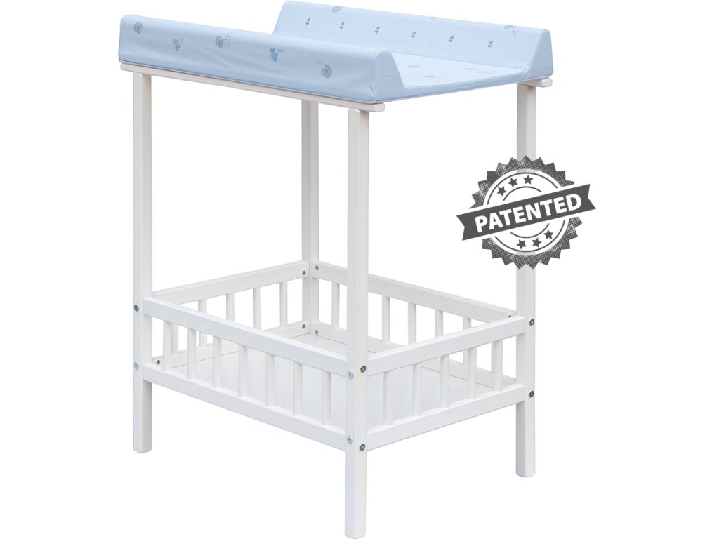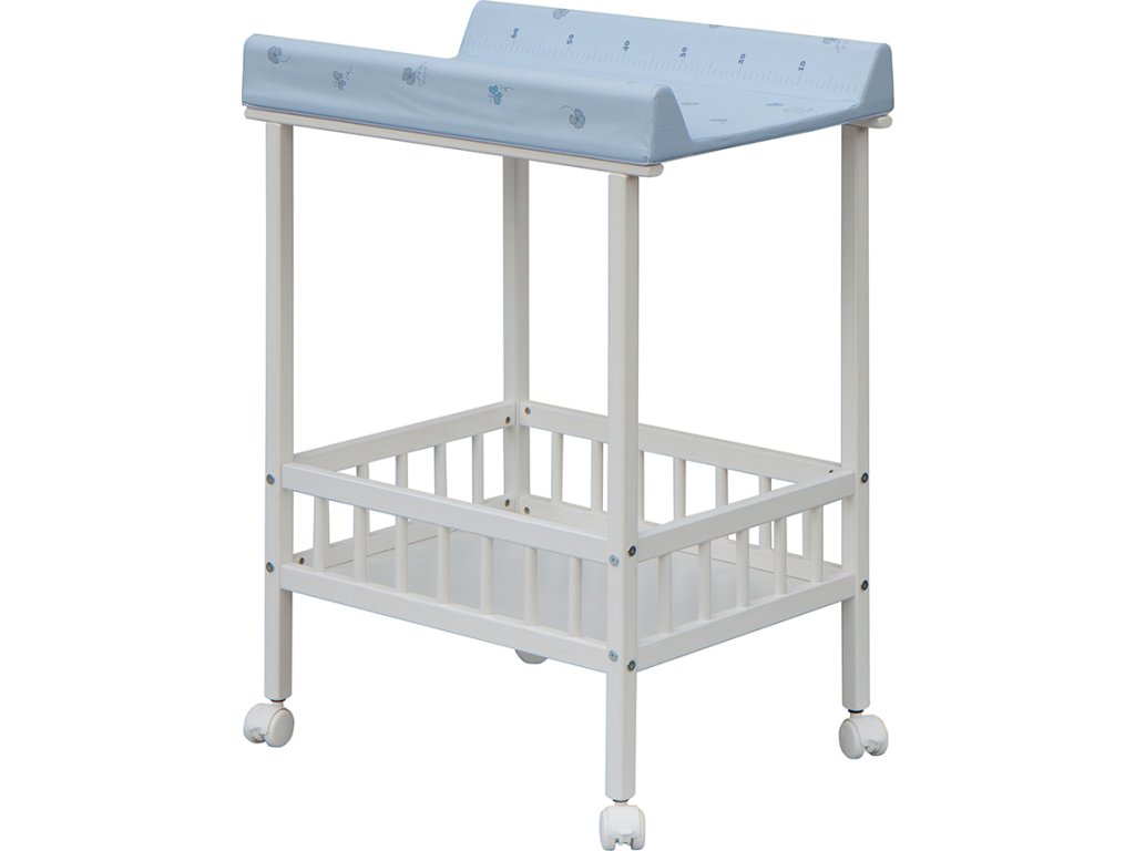 Praktický přebalovací pult se dvěmi policemi z HDF desky. Vrchní přebalovací pult z polyuretanu potažený omyvatelným PVC, vyztužený MDF deskou.