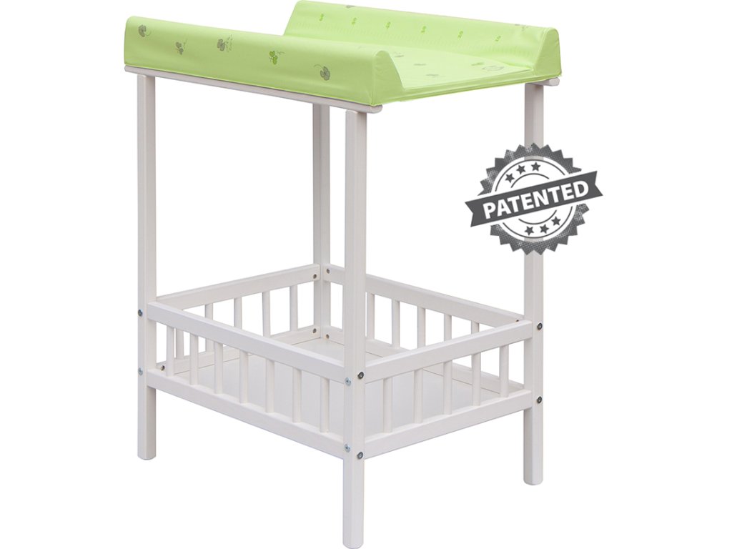 Praktický přebalovací pult se dvěmi policemi z HDF desky. Vrchní přebalovací pult z polyuretanu potažený omyvatelným PVC, vyztužený MDF deskou.