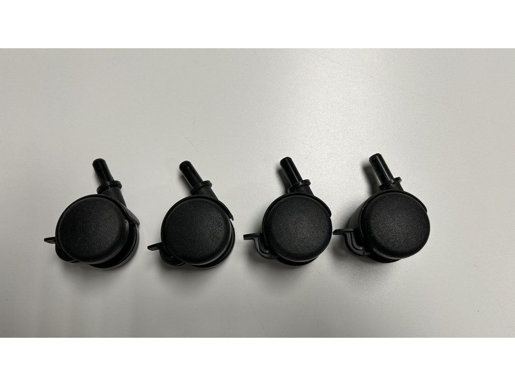 Sada 4 koleček o průměru 5 cm v černé barvě. Kolečka lze snadno přidělat k  postýlkám i kolébkám z naší nabídky. Každé kolečko je opatřeno brzdičkou.